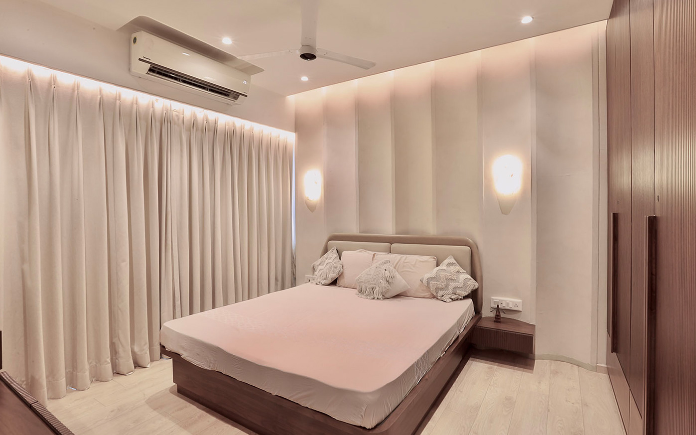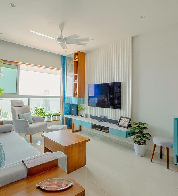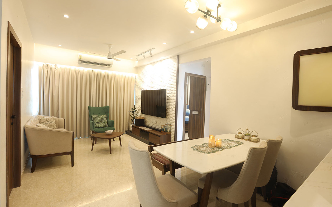 A modern home crafted to reflect the unique personality of each resident. It features a neutral color palette, textured walls, natural materials like wood and stone, linens, and high ceilings to evoke a distinctive atmosphere.